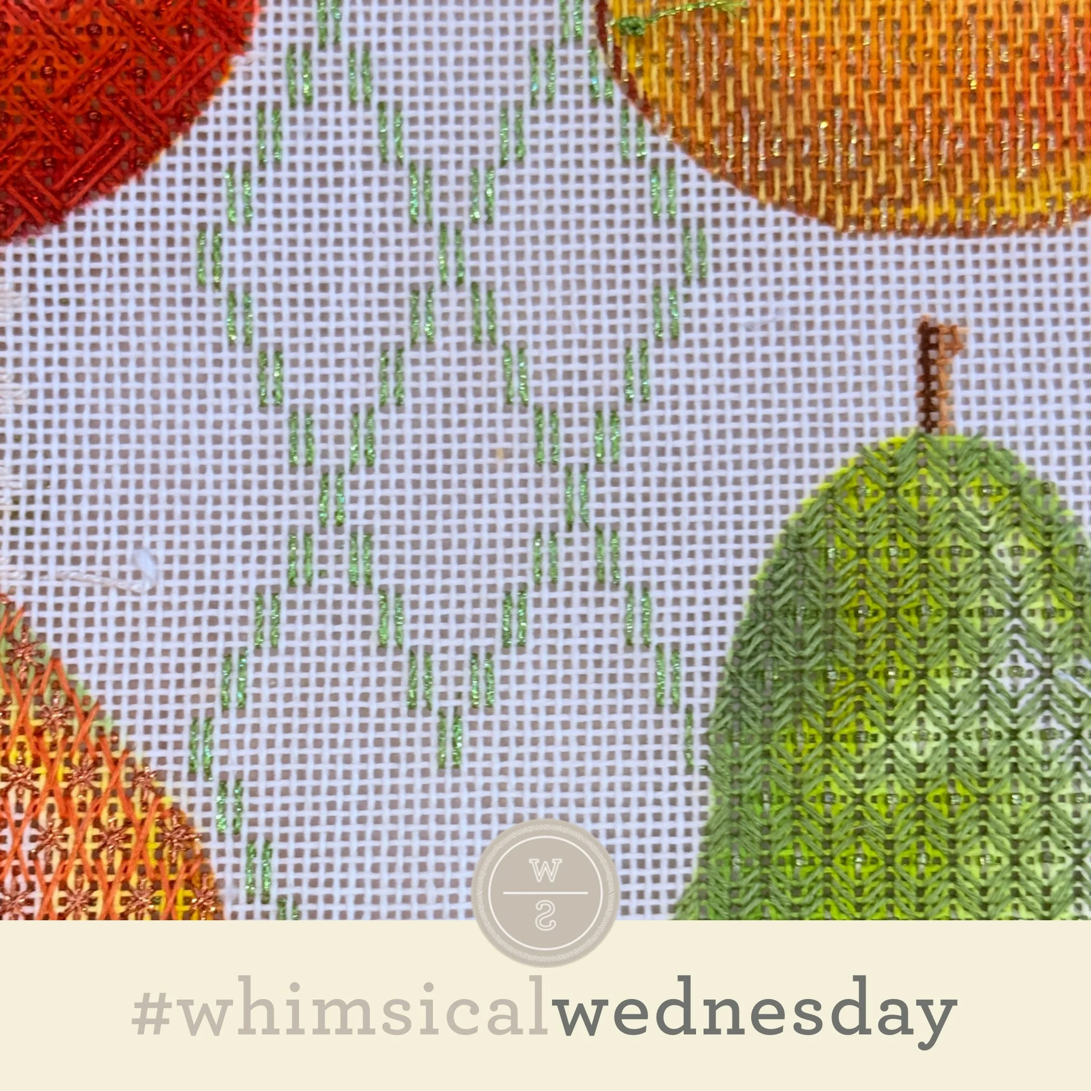 As you are auditioning stitches (from any stitch source), count the number of canvas threads on the diagram that match your mesh size. And there you have what an inch of the stitch will look like. Evaluate that against the area where you plan to use the stitch and make your final decision. If you start integrating this step into your stitch selection process, you may be surprised at how many stitches you think are large are much smaller than you realize.